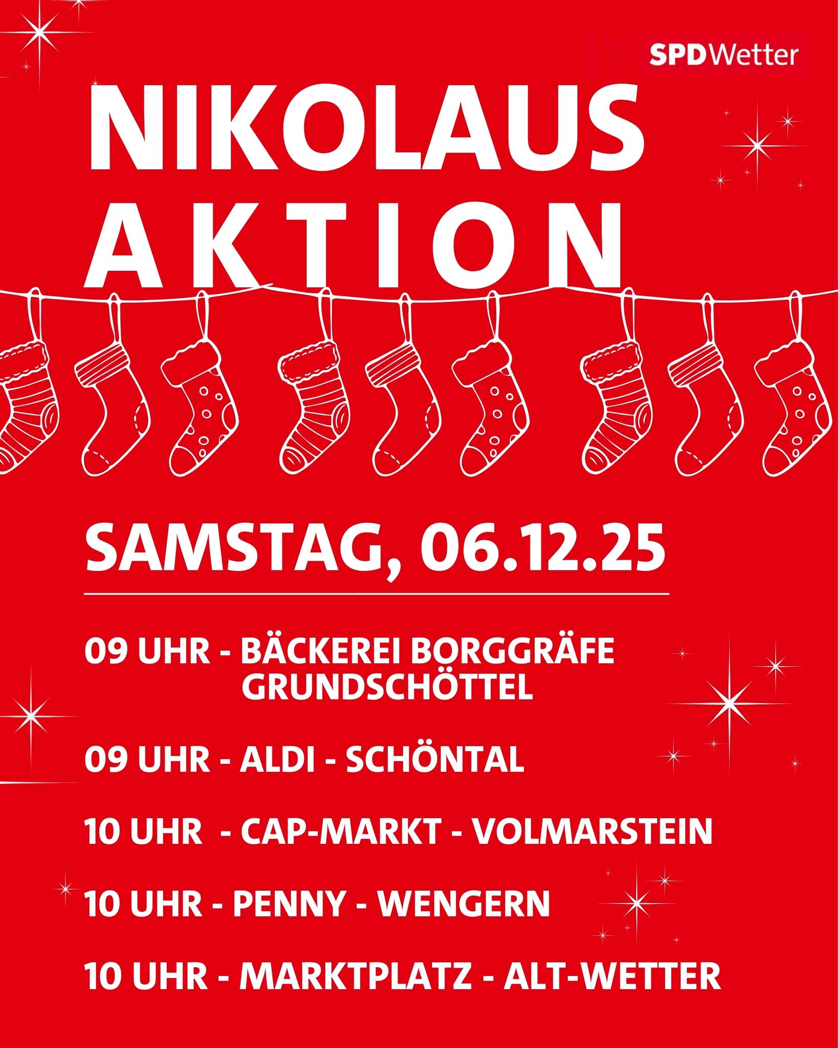 An den folgenden Orten sind wir am Nikolaustag für Euch vor Ort!