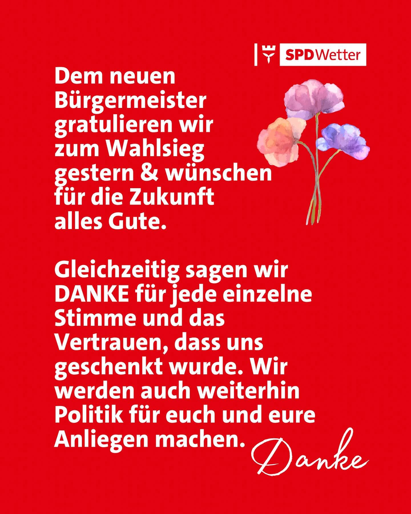 Wir bedanken uns recht herzlich für alle, die uns ihre Stimme gegeben haben. Dem neuen Bürgermeister gratulieren wir zum Wahlsieg und wünschen alles Gute für die Zukunft.